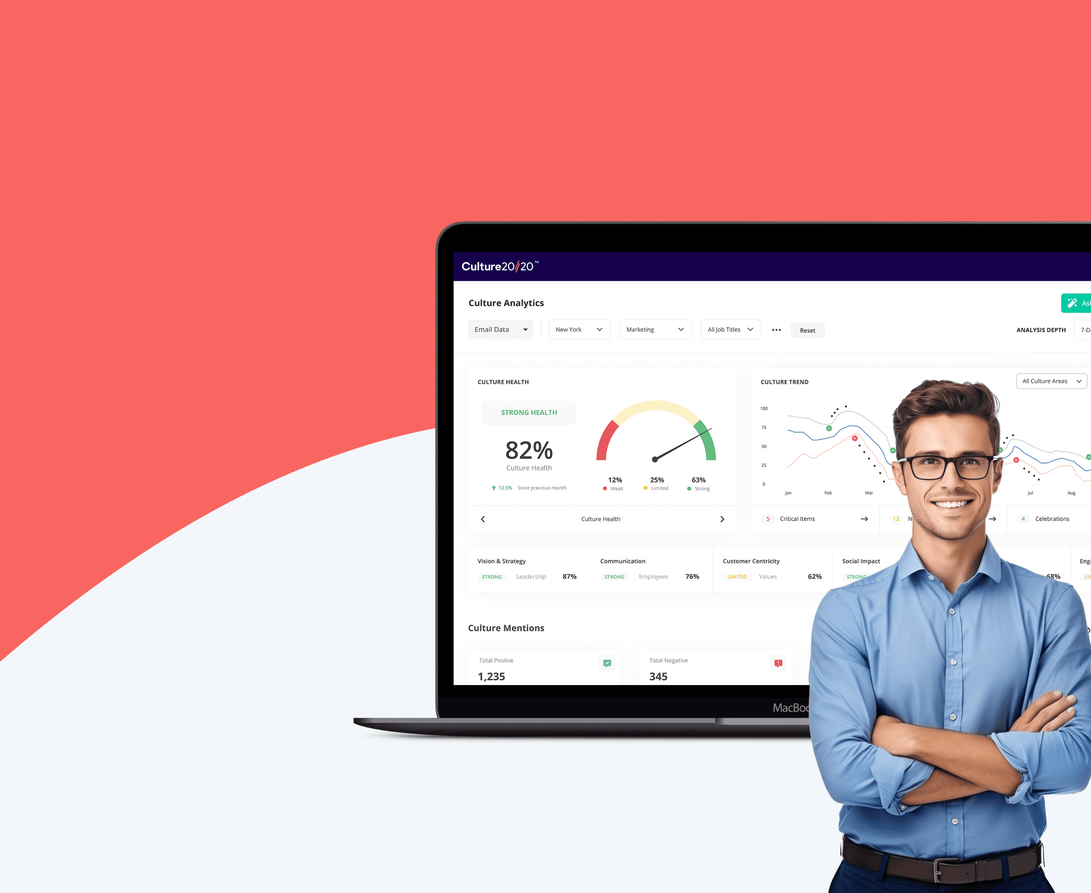 Culture 20/20™ is a platform that helps organizations take control of their culture by revealing key trends and deep insights, enabling smarter decisions that drive change.